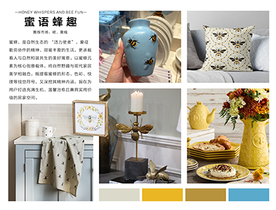 概要:蜜蜂,是自然生态的 “活力使者”,象征勤劳协作的精神、甜蜜丰盈的生活,更承载着人与自然和谐共生的美好寓意。以蜜蜂元素为核心创意载体,将自然野趣与现代家居美学相融合,既提取蜜蜂的形态、色彩、纹理等视觉符号,又深挖其精神内涵,旨在为用户打造充满生机、温馨治愈且兼具实用价值的居家空间。