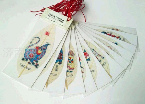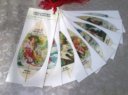 八仙系列叶脉画书签和十二生肖叶脉画书签,图案清晰,很有文化特色。