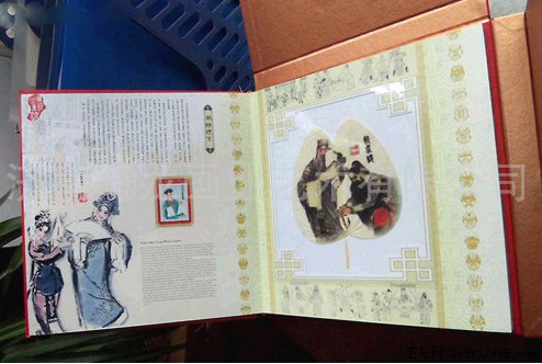 《国粹源流叶脉画与邮票珍藏册》借助邮票与叶脉画相结合这一独创的艺术表现形式,以中国红色为基调。线描京剧场景和重彩戏画相映成趣,通过“同光十三绝”、“徽班进京”、“四大名旦”、“生旦净丑”、“脸谱春秋”和“唱念做打”六个章节,以趣味故事的形式将京剧艺术的缘起、发展和辉煌,以及其最为人称道的艺术精华用中英双语形式娓娓道来,配合京剧脸谱等国粹标志性的视觉元素,呈现一部载体新奇,色彩瑰丽,信息丰富,包装极富中国传统特色的收藏礼品。
