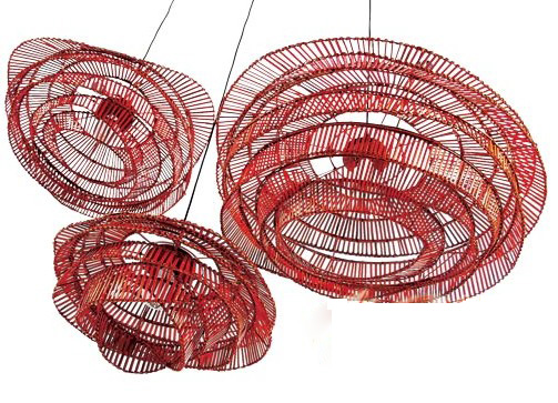 泰国设计师korakot 设计的藤编系列产品将在2007 年巴黎家居装饰博览会上展出。这款藤编吊灯,用层层叠加的形式展现出花朵状的造型。
