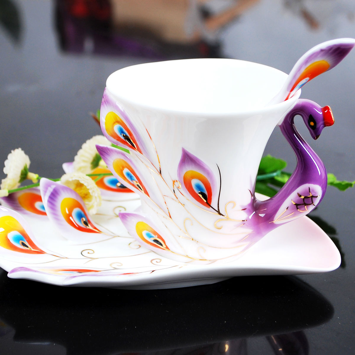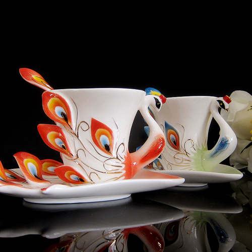 孔雀俗称凤凰,美丽吉祥。在希腊神话中,孔雀象征着赫拉女神,在中国和日本孔雀杯视为才华的体现。此款情侣咖啡杯、创意实用。