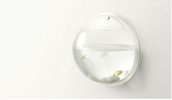 挂在墙上的玻璃透明鱼缸、晶莹剔透