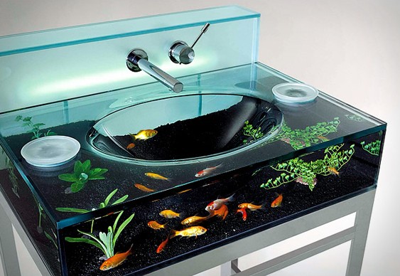 水池状鱼缸、洗手池里养鱼