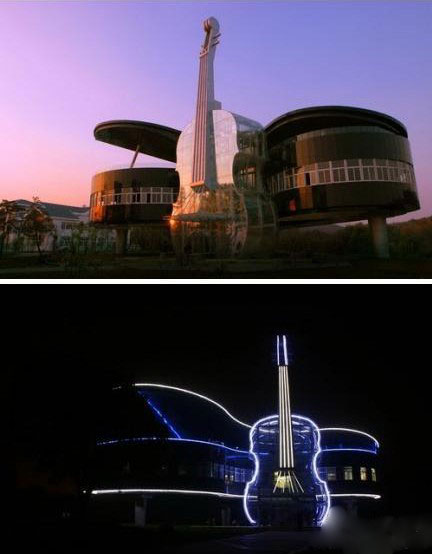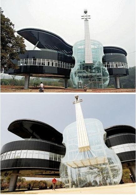 钢琴之家!!!这是一个中国安徽淮南的建筑,主建筑是一个巨大的大钢琴的样子,和靠在旁边的一个巨大的小提琴状的玻璃楼梯组合而成,整个结构的设计是由合肥工业大学的建筑学专业学生和淮南方凯装饰工程有限公司的设计师一起合作开发完成!真的是非常漂亮啊!!!
