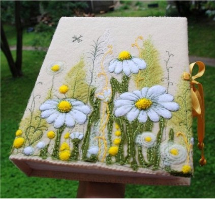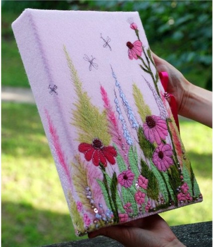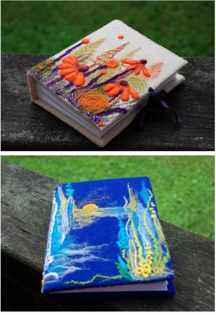 羊毛毡手工也叫羊毛毡DIY,利用羊毛毡材料制作各种手工作品,可以是玩偶,娃娃,杂货,首饰,配饰,毡化等。羊毛毡颜色丰富,制作简单,所用到的工具不复杂,这种材料在欧美日本等国家非常流行,羊毛毡手工在国内还是个新鲜的手工门类。下面这几张用羊毛毡绣出来的书本封面,精致美观,让人爱不释手。