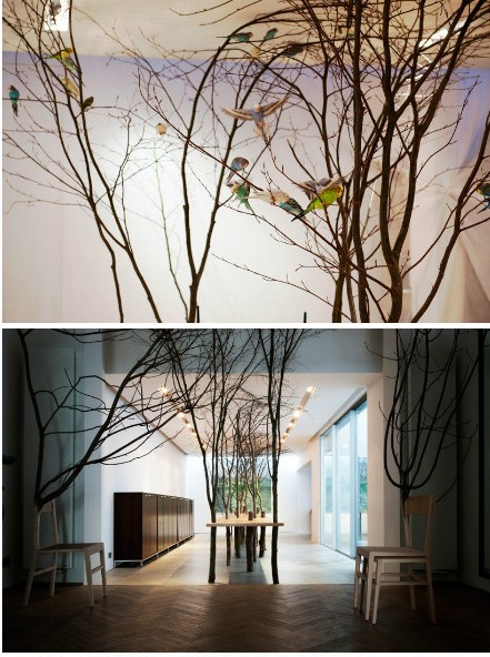"The Fantasies of Charles" 是比利时设计师charles kaisin在布鲁塞尔艺术博览会(art brussels)期间举办的一场晚宴,餐桌由实木台面和树木组成,烛台是贯穿桌面的树桩,宾客包括elio di ruppo, jean-paul gaultier, xavier & hurbert guerrand-hermès 和 36只活泼的鹦鹉 。