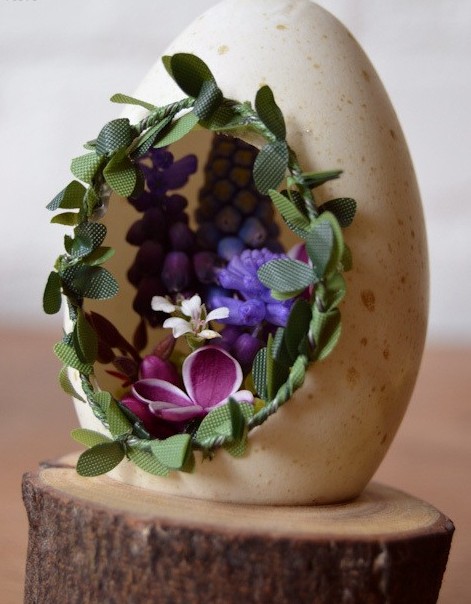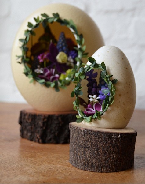 在孩提时代,我们每个人都有对全景糖蛋中那小小的美丽世界着迷的经历。(制作全景糖蛋是西方复活节的一种习俗,指在蛋壳中用糖等原材料做出的小盆景)。吉尔小的时候,每到复活节,她总会把糖蛋放到床头柜上盯着看很长时间,直到假期结束。(她放的时间太长了,以至于糖蛋都吸引了许多新居民—蚂蚁)。受到传统糖蛋的启发,如果用花草做出自己的花草盆景应该会很有趣。下面这几幅图就是在鸡蛋上雕刻出来的盆栽,非常精致美观!
