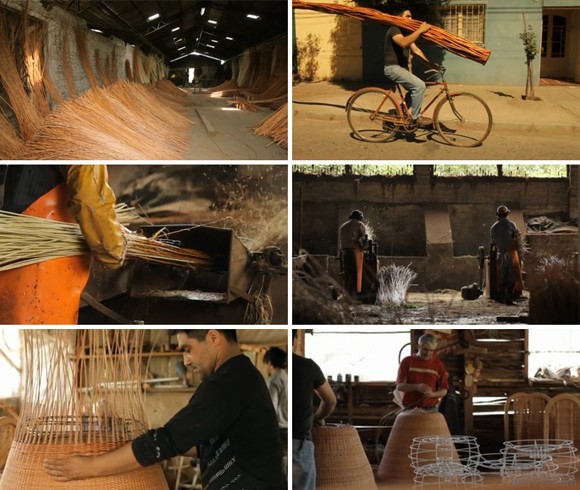 智利年轻的设计机构the andes house从传统的手工艺人那学习了编织技术,利用当地的藤材料设计了’made in mimbre‘系列现代灯具,灯具中利用铁质框架将藤条固定成型,同时保留了藤的自然色彩和纹路,给人一种自然古朴温馨的感觉。