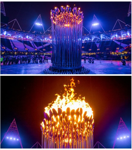伦敦奥运会开幕式上最亮的店就是伦敦奥运会的主火炬。这个由镌刻着各国名字的花瓣组成的火炬,出自设计师Thomas Heatherwich之手,我们对于Heatherwich的了解或许可以追溯到2010年的上海世博会上,世博会的英国馆正是他的作品。