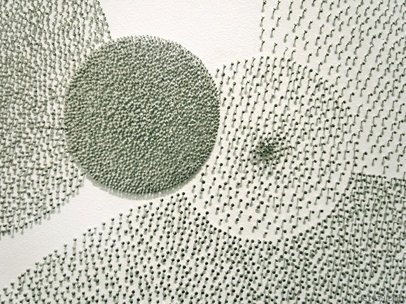 纽约艺术家tara donovan在2012巴塞尔艺术博览会上展出的艺术作品由成千上万颗钉子组成,非常壮观且具有独特魅力。