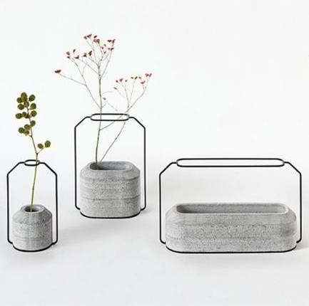 泰国设计师Decha Archjananun近期带给我们一崭新系列的花瓶设计,完全颠覆传统花瓶样式。摒弃了传统花瓶各种曲线特制,他采用超简约的金属框架来扮演瓶身角色。但你不会觉得这花瓶轻浮,因为它的基座采用的是混凝土。这真是力与美钢与柔的完美结合。