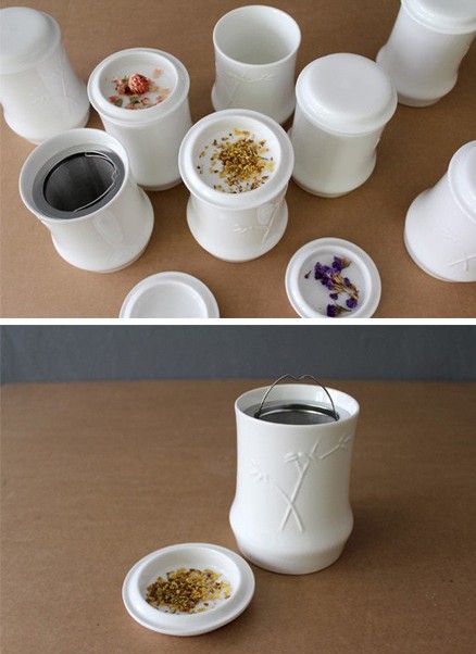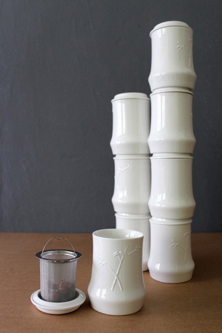 有点意外,这一组皎洁风雅的竹节茶杯竟是出自一个名为“shape shape design”的德国设计室之手,每一只杯子都被设计成一只竹节的形状,杯身上还描摹出清简的竹子图案,高雅脱俗。