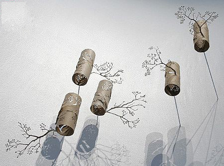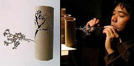 看到这艺术品,不由得又想到那句话“世界上没有任何废物,只是放错地方而已”。卷纸筒,在你我生活中普通的不能再普通的东西,而到了艺术家手中则会丑小鸭变天鹅。日本艺术家Yuken Teruya展现他精湛刀功,在这平淡无奇的卷纸筒上精心地雕琢出了富有东方神韵的树,当多个卷轴连在一块,就组成了一片美丽的森林风景,非常漂亮。纸的原材料即是树木,呼吁大家时时刻刻节约地球资源,低碳环保。
