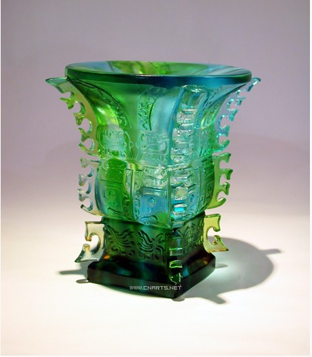中国的琉璃艺术历史悠久,最早可以追溯到商周年代。早在三千多年前的西周和东汉时期,古人为了比拟珠玉、宝石就创造出晶莹剔透、温润光滑的琉璃艺术精品。唐朝元稹《咏琉璃》中描写“有色同寒冰,无物隔纤尘”就传达出琉璃璀璨夺目的诱人风采。现代中国琉璃承传两三千年前中国琉璃的铸造传统,并取得了更为辉煌的成就。而世界其他国家的琉璃艺术也有其历史传统和独特魅力。19世纪的法国人就以“PATE-DE-VERRE水晶粉脱蜡铸造”的名称,重现三千多年前古埃及失传的脱蜡玻璃铸造技法,曾经制作出风靡全球的艺术品。