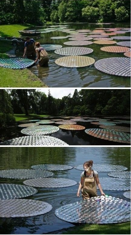 英国艺术家Bruce Monro回收了65000张CD,排列组合后就成了你现在看到的样子——浮萍!为这座公园带来一新的亮点,但是在阳光照射的时候,你能想象整片湖面闪耀的光芒吗?