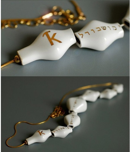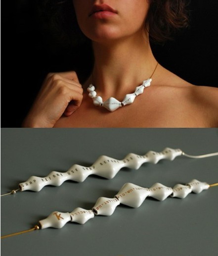 来自Studiokahn的陶瓷项链,当到你手中的时候项链是一个整体的,需要你轻轻敲碎项链中最细的环节,直到变成可以佩戴的项链。有24K金和925银,四种不同的形状可供选择。