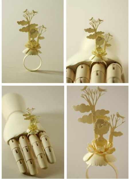 戒指上还可以刻画出如此精致的纸雕,不得不让人叹服!