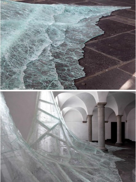 冲击—粉碎—倾泻—定格,Baptiste Debombourg用玻璃波浪呈现出这一扣人心弦的瞬间。动与静在这个空间里饱含张力却诡异地融为一体,让人浮想联翩。