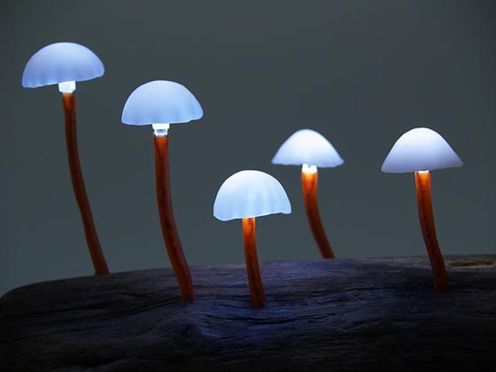设计师 Yukio Takano 设计的全新蘑菇灯,真的是超级像野生的蘑菇啊,底座还是木头的,这一颗颗小小的蘑菇,加上这梦幻般的灯光,夜晚将屋子装扮的格外浪漫!不知道设计师会不会唱采蘑菇的小姑娘……thisiscolossal