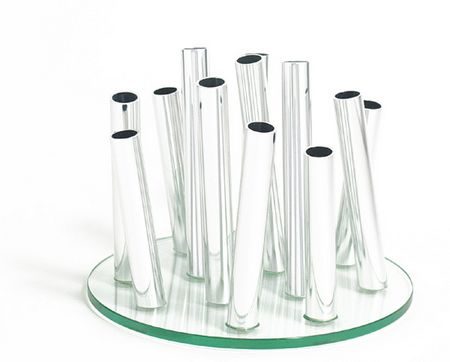 别具一格的原创设计,金属、玻璃材质的冷色调衬托下,其间的花束显得更加典雅大方,平添一种典雅的格调。