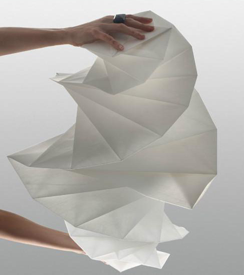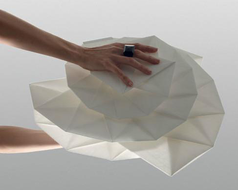 日本时装设计师三宅一生为意大利灯具制造商Artemide设计了名为“IN-EI”的系列灯具产品。这些灯具由回收的PET塑料瓶做成,收起来可以成为二维平面折纸;展开之后是三维图形。
