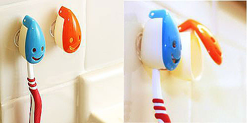 这个傻乎乎的灿烂的笑脸可以提醒你两件事:别把牙刷扔在脏水里;保持洗面台的整洁。而且它还可以微笑着伴你到任何地方——它的脑袋后面有个小吸盘,可方便地随处挂取,只需揭开它的笑脸,挂上牙刷,行了!