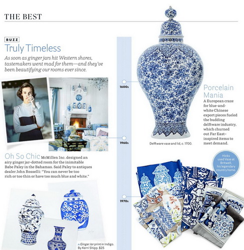 古老中国的青花瓷灵感,青花瓷的历史,真是可以从很久很久以前说起,《住宅美化》讲诉了青花图案从陶瓷到织物的应用。