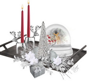 圣诞单品包括有麋鹿摆饰、圣诞吊球、麋鹿挂画、烛台、水球、花环等。