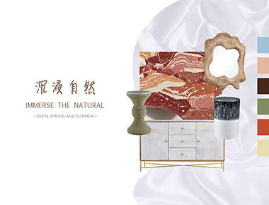 概要:一切的灵感都来源于最原始的自然,大地是最美的艺术家,通过一年四季自然变化形成的抽象画卷,带给人们无限的遐想与震撼。设计师与艺术家们沉浸其中,抽象化的表面之下深藏着对未来的渴望,未来世界是科技占领前沿、是注重感受甚至虚拟化场景变得非常普遍,这是一个源于自然、通往未来的主题,既保持着现有自然景象的抽象艺术,又追求着未来科技影响下的智能时代。在色彩上运用更多的是充满轻盈与幻想的浅蓝色、橄榄绿、浅肉棕色等,给人舒适以及放松的环境状态。在产品上应用可以参考不规则舒缓起伏、自然残缺、大地纹理等来表达这个沉浸自然的状态。