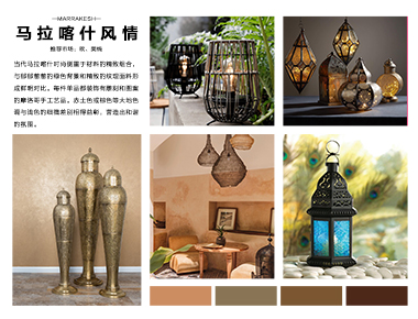 概要:当代马拉喀什时尚侧重于材料的精致组合,与郁郁葱葱的绿色背景和精致的纹理面料形成鲜明对比。每件单品都装饰有雕刻和图案的摩洛哥手工艺品。赤土色或棕色等大地色调与浅色的细微差别相得益彰,营造出和谐的氛围。