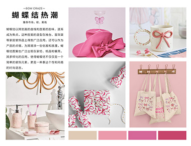 概要:蝴蝶结以其优雅的曲线和甜美的韵味,逐渐成为焦点。这种甜美的造型在烛台、首饰架等家居装饰品上得到广泛应用,还可以作为产品的点缀,为其增添一份优雅和浪漫。蝴蝶结图案也广泛出现在家纺、纸品和餐具。其多样化的应用,使得蝴蝶结不仅仅是一个简单的装饰元素,更是一种表达个性和风格的时尚语言。