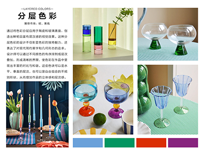 概要:通过将色彩分层应用于陶瓷和玻璃表面,创造出鲜明且富有层次感的视觉效果。这种分层色彩的设计不仅彰显色彩的独特魅力,还表达了对现代简约美学和几何形态的追求。设计师可以通过不同颜色的有序排列或层次叠加,形成清晰的界限,使色彩在作品中呈现出丰富的对比与和谐。