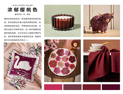 概要:樱桃红漆色呈现出一种深邃而奢华的暗红色调,其灵感源自红莓汁般的浆果色演变,色泽饱满且富有层次,带着微妙的光泽感,仿佛在光影之间悄然流动。这一色彩既拥有低调的神秘氛围,又为空间注入温暖与精致气息,是冬季家居趋势中极具存在感、能瞬间提升空间质感的亮点色之一。
