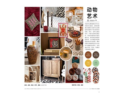 概要:本趋势主要强调自然与生活的多元融合。动物纹理通过抽象化与现代化处理呈现轻盈而个性化的视觉效果。同时,自然元素如花卉、叶脉与动物纹理交织,带来丰富的层次感与趣味性。多材质运用贯穿全系列,从织物延伸至陶瓷玻璃与环保材质,整体风格在保留野性自由与自然力量象征的同时,也传递出年轻、轻快、充满活力的春夏生活美学。