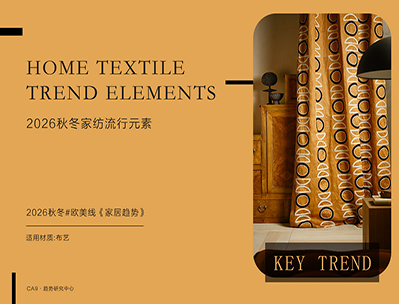 概要:2026秋冬家纺趋势围绕“质感回归与情绪治愈”展开,在经典图案基础上注入更具当代感的表达。复古重复纹样、精致描边细节与条纹节奏感持续升温,呈现理性秩序中的优雅氛围;Burgundy勃艮第红、森林绿、暖中性色成为关键色彩,为空间注入温暖与高级感。