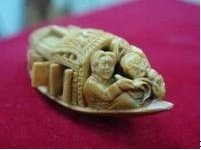 核舟:是专门用果核雕刻成画船和小舟的民间工艺品,起源于古代,兴盛于明清时期,表明古代工艺的高超境界和我国古代劳动人民的智慧。是核雕技艺中微雕的一种。明朝有个特殊技艺的人叫王叔远,他能够将直径一寸的木头,雕刻成宫殿、器具、人物,甚至飞鸟、走兽、树木、石头,都能按照这木头原来的样子刻成各种事物的形状,各自具备各自的情态。王叔远就是一位雕刻核舟的艺术高手,他雕刻的“苏轼游赤壁”核舟,后被散文家魏学洢写成《核舟记》一文,生动的描述了这件精巧绝伦的微雕工艺品。其中有“罔不因势象形,各具情态”“而计其长曾不盈寸,盖简桃核修狭者为之。”等语句,可以看出核舟具有很高的艺术和观赏价值。