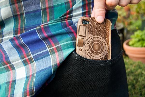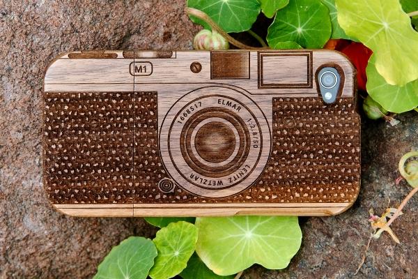 与其说它是一个手机壳,还不如说是相机壳,用胡桃木材制作的iPhone壳似乎将你的手机装进了一个木箱子,外观看起来和相机一样。木材的自然光泽加上雕刻细致的摄像头,使得指尖的触感更加相信它就是一个真正的相机。