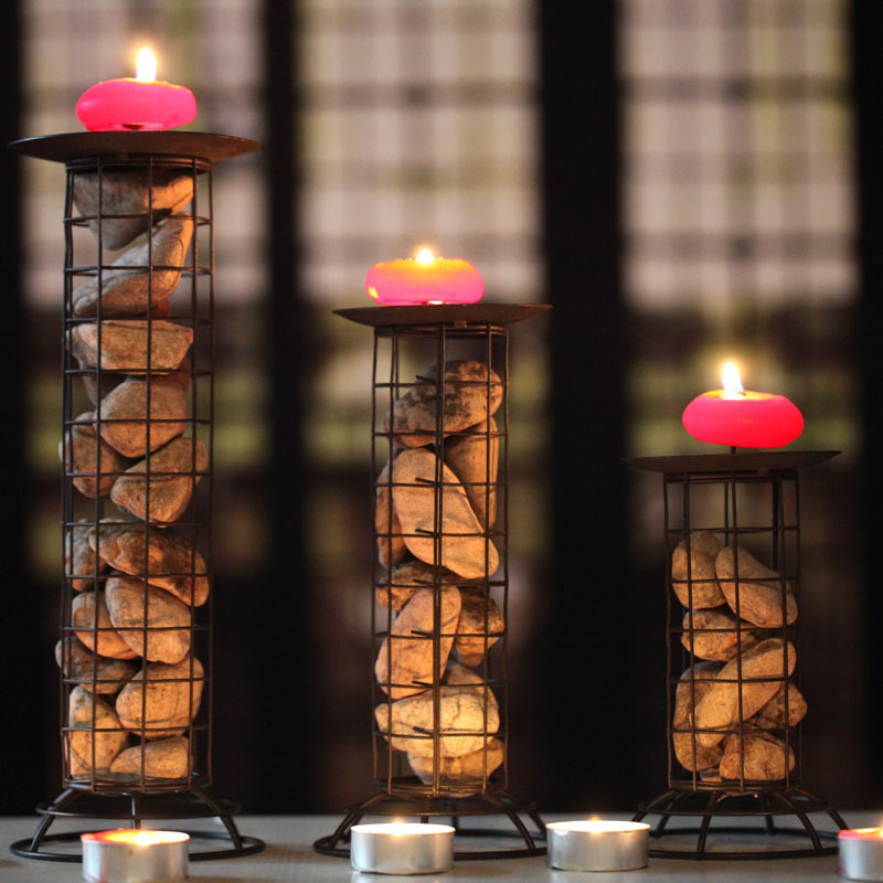 现代简约鹅卵石铁艺烛台