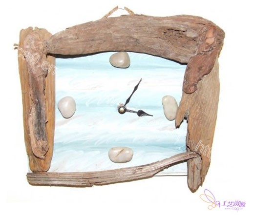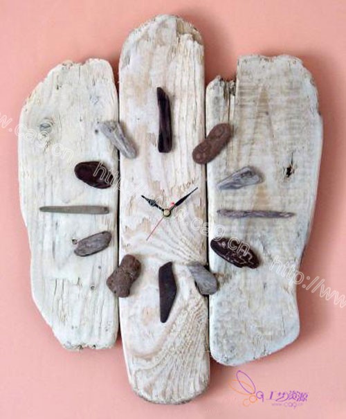 漂流木:采取湖岸边天然浮木,手工制作成方形古朴的漂流木时钟、以逼真可爱的小石子作点数,充满着大自然味道,挂在家中,让你将时光徜徉在大自然无以复加的美中。