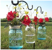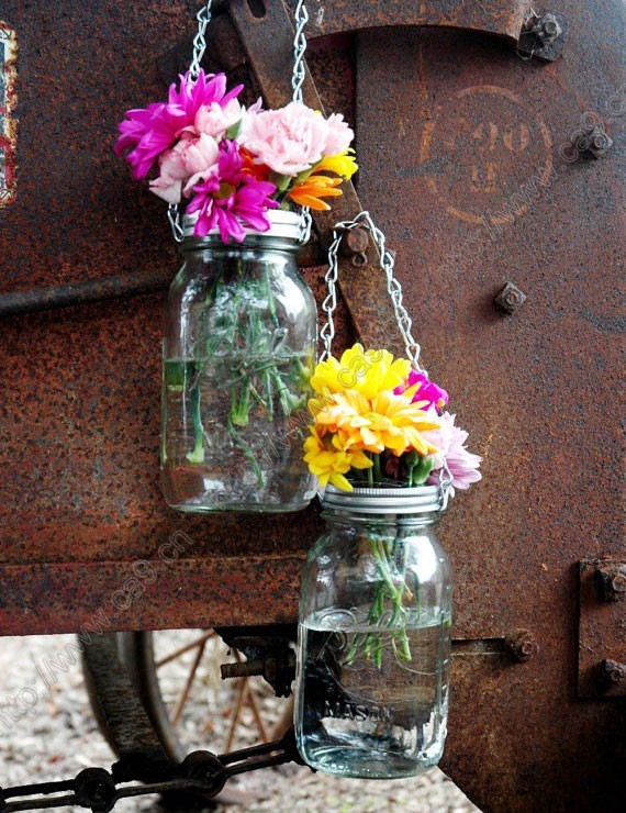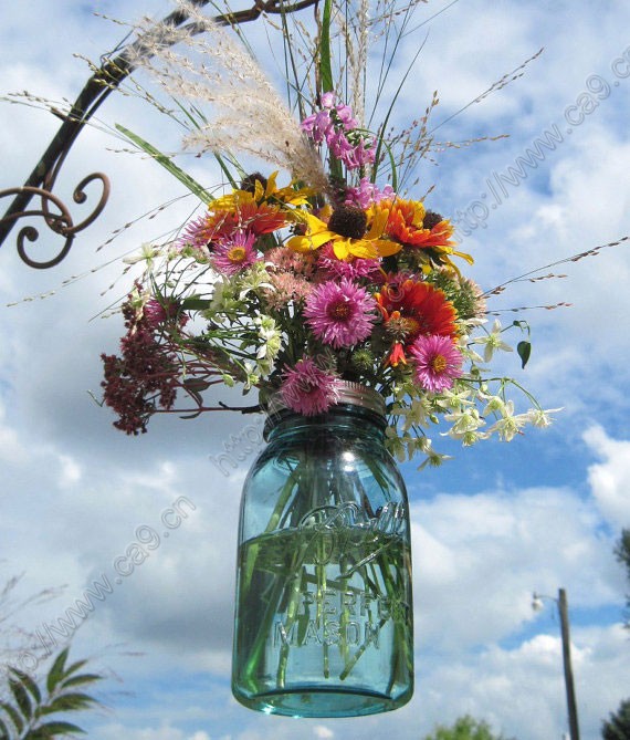 回收玻璃瓶:插上花儿的玻璃瓶可挂在墙上也可吊挂在空中,既环保又有创意哦