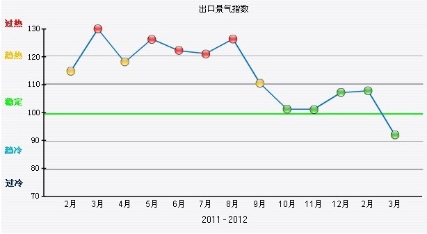 图3-3 2011.2—2012.3 陶瓷行业出口景气指数变化态势