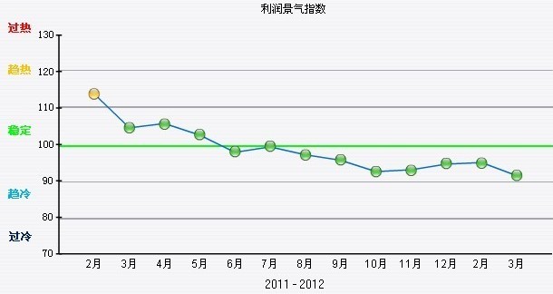 图3-5 2011.2—2012.3 陶瓷行业利润景气指数变化态势