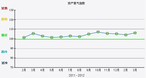 图3-4 2011.2—2012.3 陶瓷行业资产景气指数变化态势
