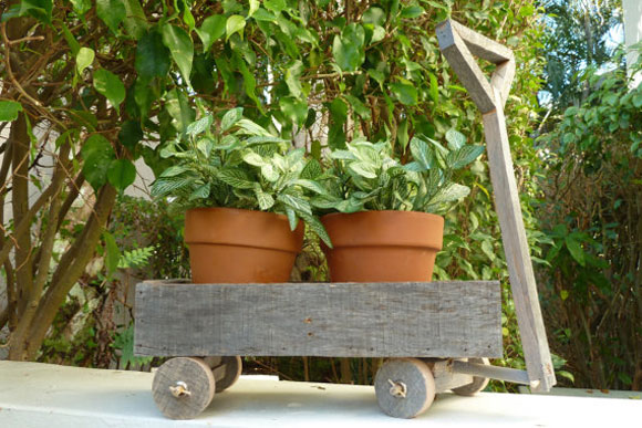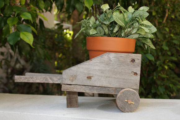 采用天然的再生木材,手工与自然的结合,做成老式的手提包或质朴的俏皮小推车,可爱又有创意哦,可用来作花园装饰盆栽。