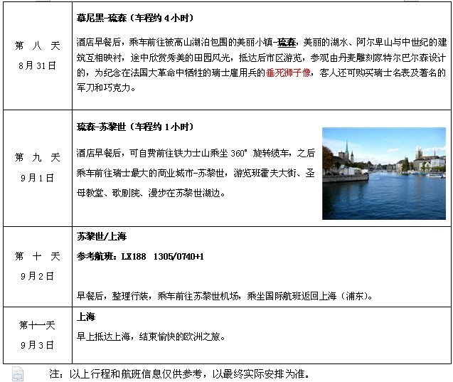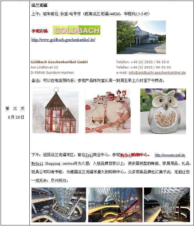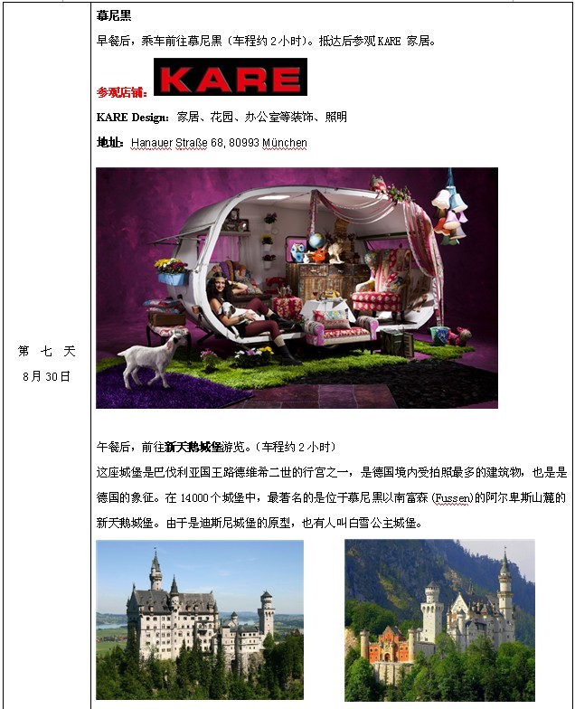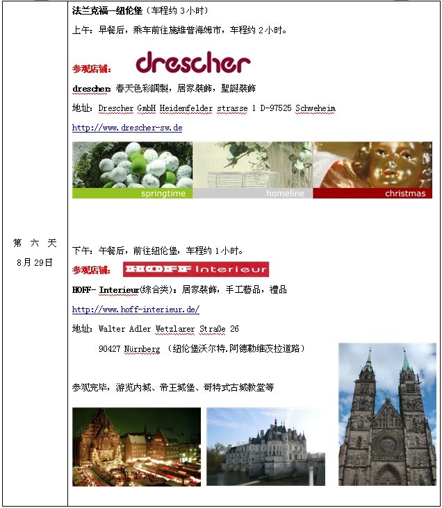 访问城市及地区:法兰克福、纽伦堡、慕尼黑、琉森、苏黎世