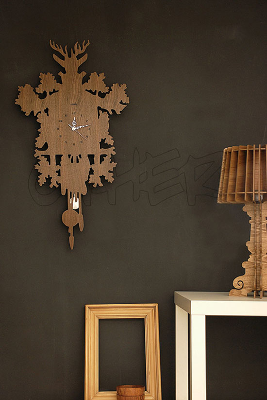 格林童話中的森林總是充滿奇幻與驚喜,這個 "只見其影" 的原木森林挂钟,更是神祕的