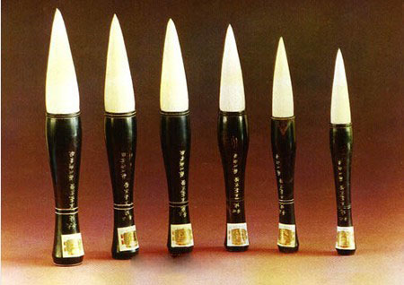 笔毫的形制是为书写、绘画的需要而改进提高的。古人以竹笋式制成笔毫,是我国传统品名,属于短锋羊毫、兼毫笔类。锋短而身短粗,形如笋状。锋腹粗状,落纸易于凝重厚实。除实用外,给人以鉴赏趣味。又如兰花式制成的笔毫,也是我国传统毛笔品类之一。笔头圆润,洁白纯净娇柔,似含苞欲放之玉兰,给人以秀美观赏之感、赏心悦目之快。古代还有一种品名,把笔毫做成葫芦式,兼毫圆润坚劲。