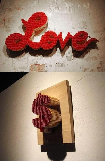 现在估计大家都很少接触到火柴这玩意了吧。洛杉矶的艺术家们把火柴玩出了高境界,用几千根火柴创造了一个又一个漂亮的图案,最经典的在于在那么多火柴在点燃的瞬间的那种美感,简直让人惊叹。这才是玩火柴的最高艺术。