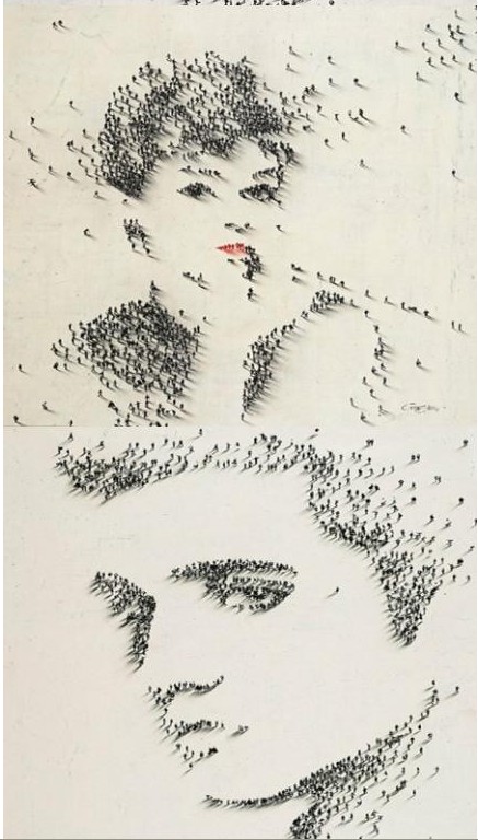经典!堪称秩序的结晶,这个由数百人组成的明星沙滩照在美国亚特兰大市完成,用人做像素,利用太阳照射形成的人影,巧妙的拼凑成了一张张有“生命”的我们熟知的人物图片。 不但增添了灵性,看起来也是惟妙惟肖。沙滩照中有被众人视为性感女神的梦露,也有被世人敬仰的人间天使赫本,更有被大家称为“猫王”的普雷斯利。