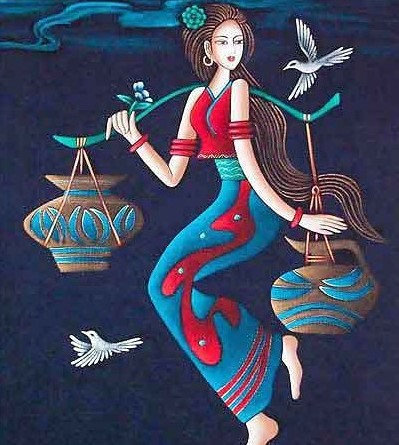 蜡染是古老的艺术,又是年轻的艺术,现代的艺术,它概括简练的造型,单纯明朗的色彩,夸张变形的装饰纹祥,适应了现代生活的需要,适合现代的审美要求。